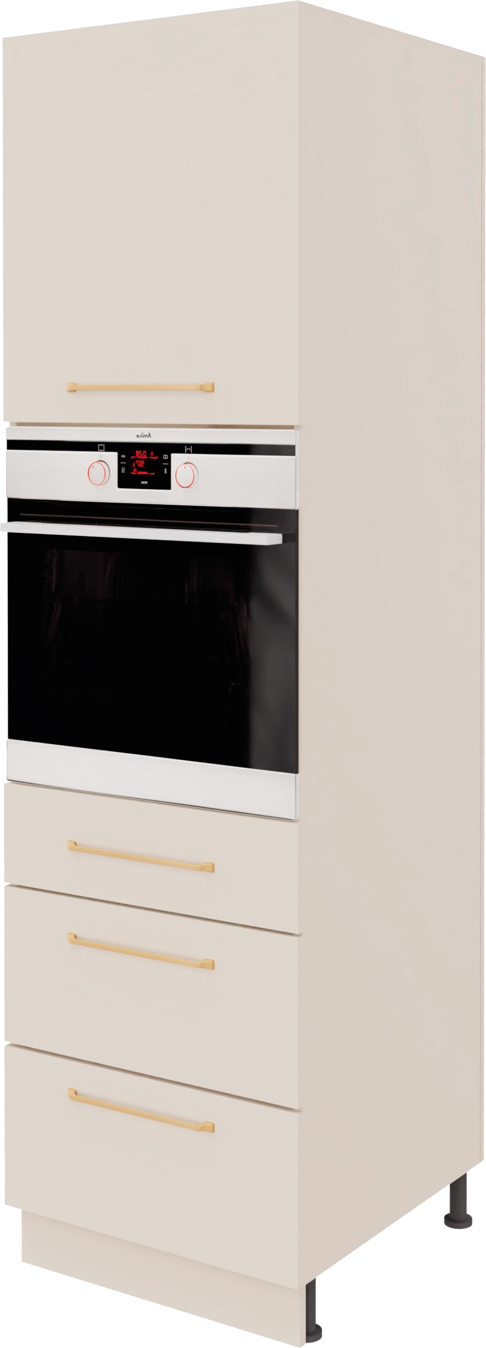 Funkcjonalny mebel kuchenny Imperia o szerokości 60 cm, stanowiący zabudowę piekarnika. Drzwi otwierane są w prawą stronę, a zawiasy wyposażone są w funkcję samodomykania, co zapewnia płynne i ciche zamykanie. Ten praktyczny element kuchni łączy funkcjonalność z nowoczesnym designem, doskonale integrując piekarnik z resztą zabudowy.