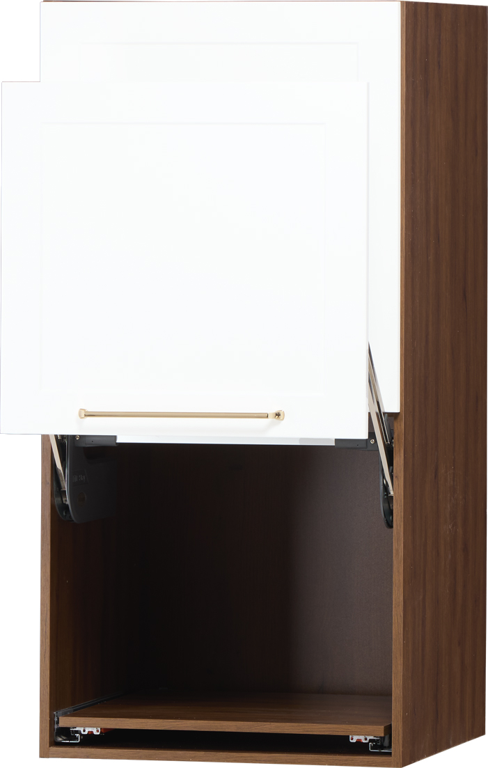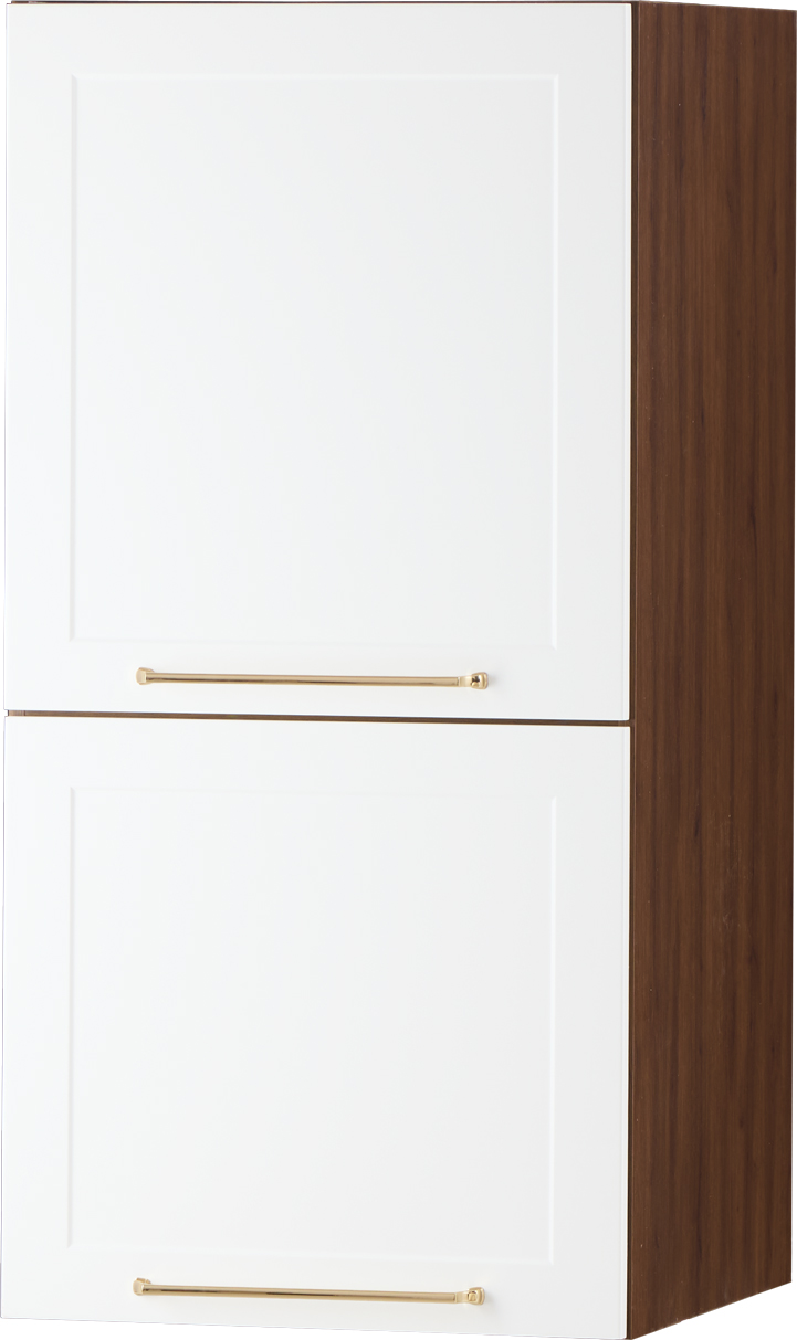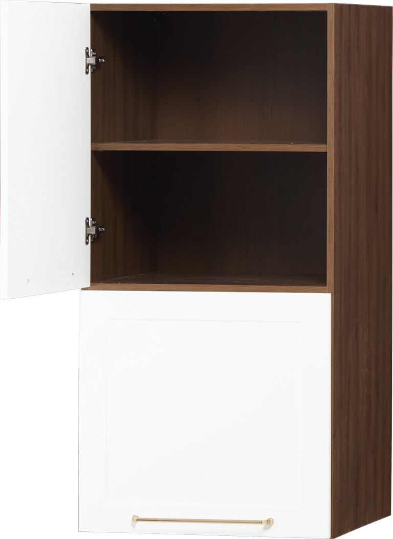 Zabudowa nadblatowa lewa „LAURENCJA” w wykończeniu biały lakier mat z korpusem w kolorze Orzech Foresta to eleganckie i ponadczasowe rozwiązanie do nowoczesnej kuchni. Matowy front nadaje wnętrzu subtelny, stonowany charakter, a ciepły dekor orzecha wprowadza przytulność i naturalny akcent.