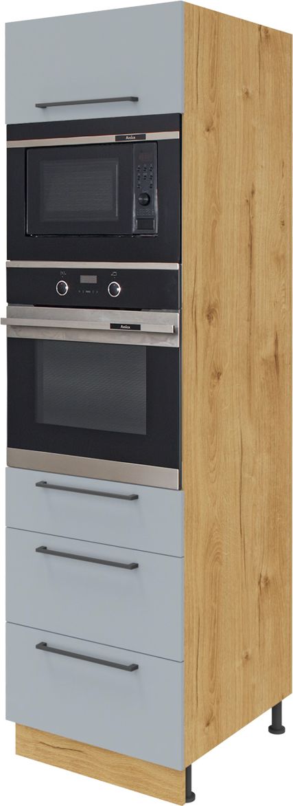 Wysoka zabudowa piekarnika/mikrofali Monia (szary/dąb Soma ciemny)