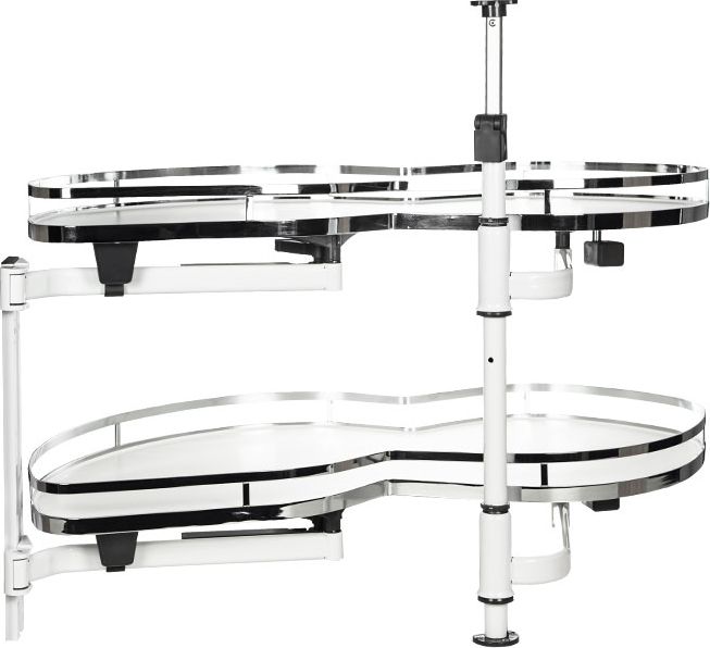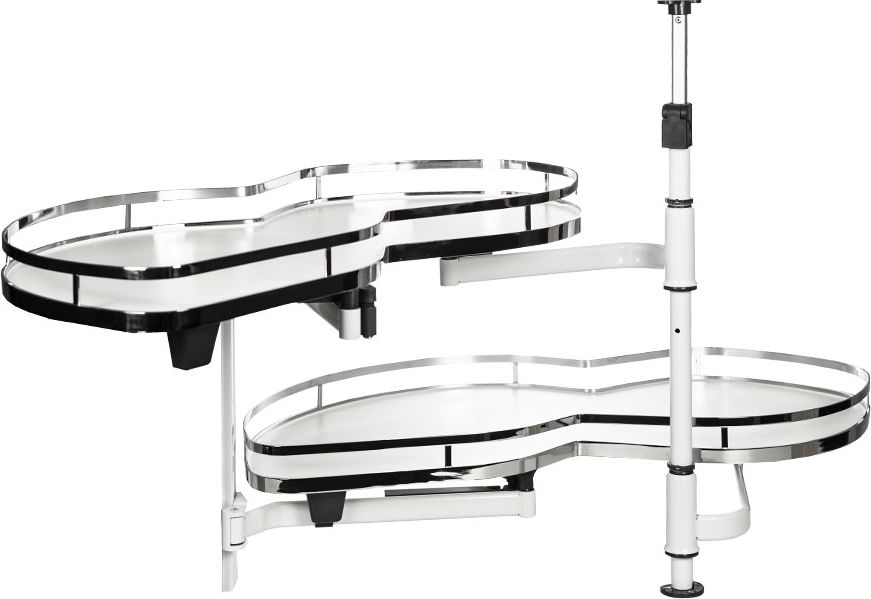 Niezwykle funkcjonalny, wysuwany kosz typu nerka do szafki kuchennej narożnej wysuwany na prawą stronę. Dzięki niemu codzienne czynności w kuchni staną się wygodne, a trudno dostępne miejsca będą w pełni zagospodarowane. Dwie półki wsuwające się całkowicie, pokryte są antypoślizgową wytrzymałą matą. Ułatwia to sprzątanie oraz zapewnia bezpieczeństwo przechowywanych przedmiotów.