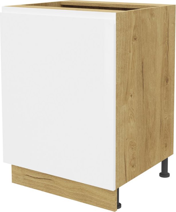 Szafka 60 dolna prawa Kampara pod zlew lub płytę grzewczą (Biały połysk/dąb Soma ciemny)