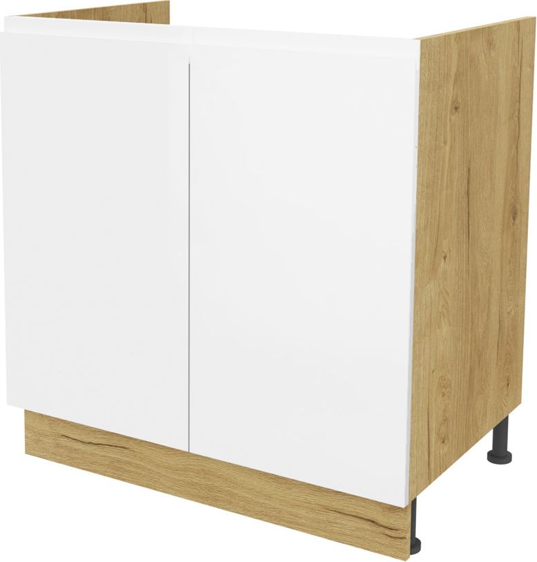 Szafka 80 dolna zlew Kampara (Biały lakier/dąb Soma ciemny)