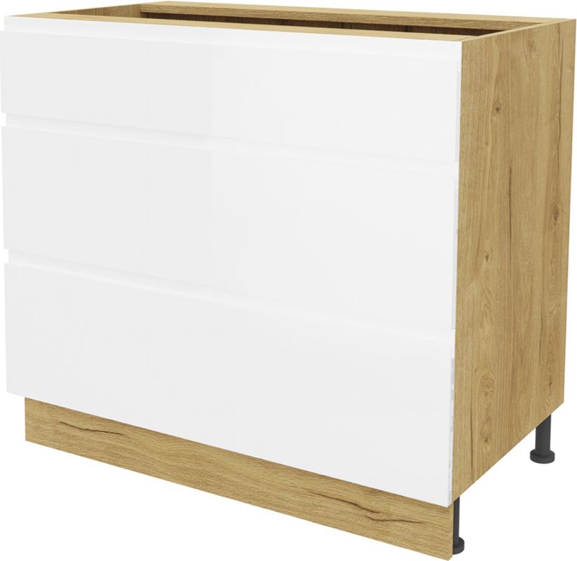 Szafka 90 dolna szufladowa Kampara (Biały lakier/dąb Soma ciemny)
