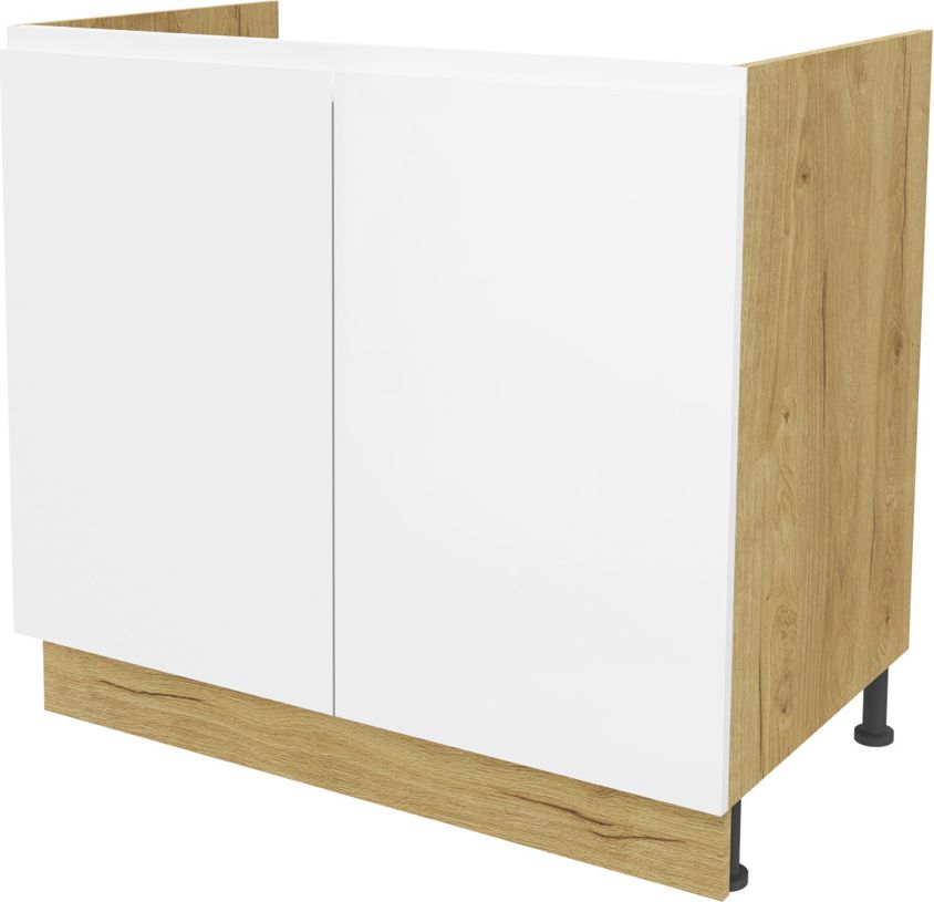 Szafka 90 dolna zlew Kampara (Biały lakier/dąb Soma ciemny)