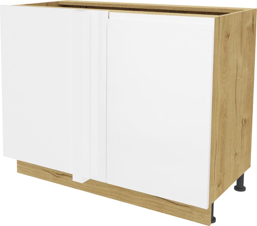 Szafka narożna dolna-prosta lewa Kampara na kosz cargo (nerka) (Biały lakier/dąb Soma ciemny)