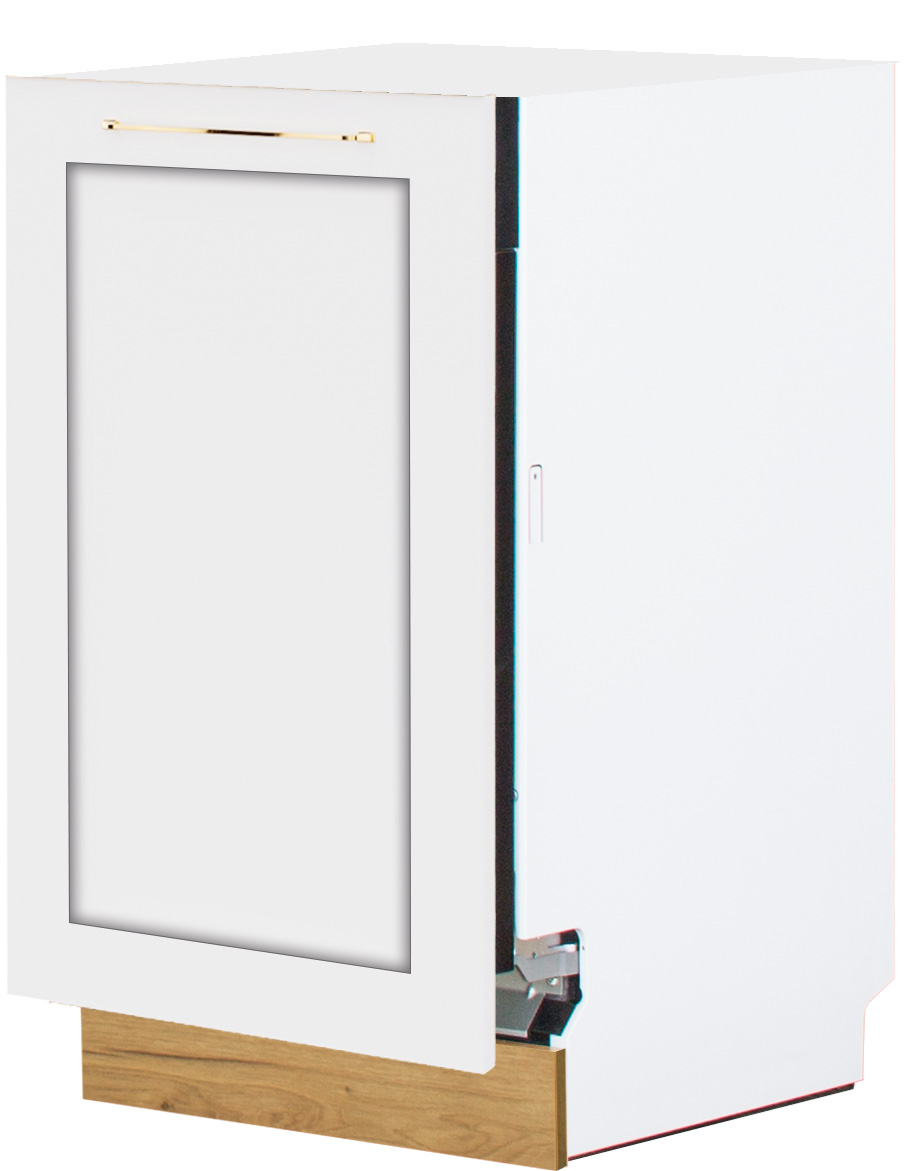 Dolna zabudowa zmywarki 45 z panelem zakrytym Laurencja (biały lakier mat/dąb Soma ciemny)