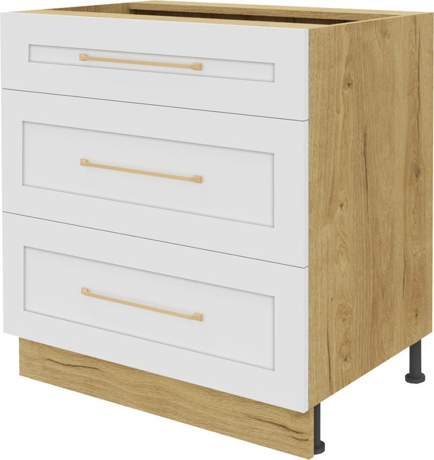 Szafka 80 dolna szufladowa Laurencja (biały lakier mat/dąb Soma ciemny)