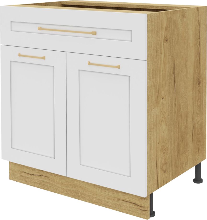 Szafka 80 dolna z drzwiami i szufladą Laurencja (biały lakier mat/dąb Soma ciemny)