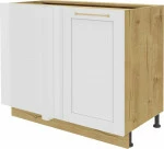 Narożna dolna prosta szafka Laurencja o szerokości 103 cm. Zawiasy zastosowane w szafce posiadają funkcję samodomykania.