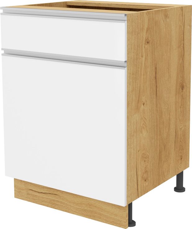 Szafka 60 dolna lewa z drzwiami i szufladami Monia z Easy Box (biały połysk/dąb soma ciemny)