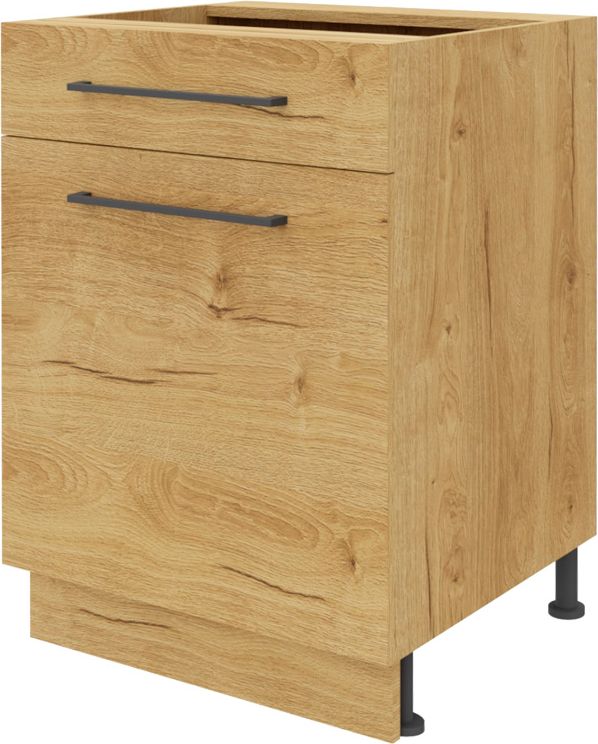 Szafka 60 dolna lewa z drzwiami i szufladą Bellona Easy Box (biały połysk/dąb Soma ciemny)