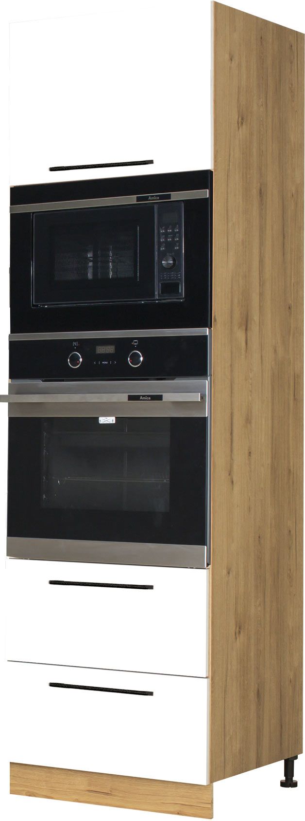 Wysoka zabudowa piekarnika/mikrofali Bellona z easy box (biały połysk/dąb Soma ciemny)