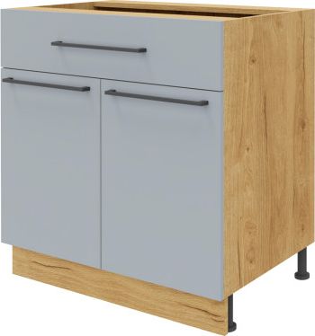 Szafka 80 dolna z drzwiami i szufladą Monia z easy box (szary/dąb Soma ciemny)
