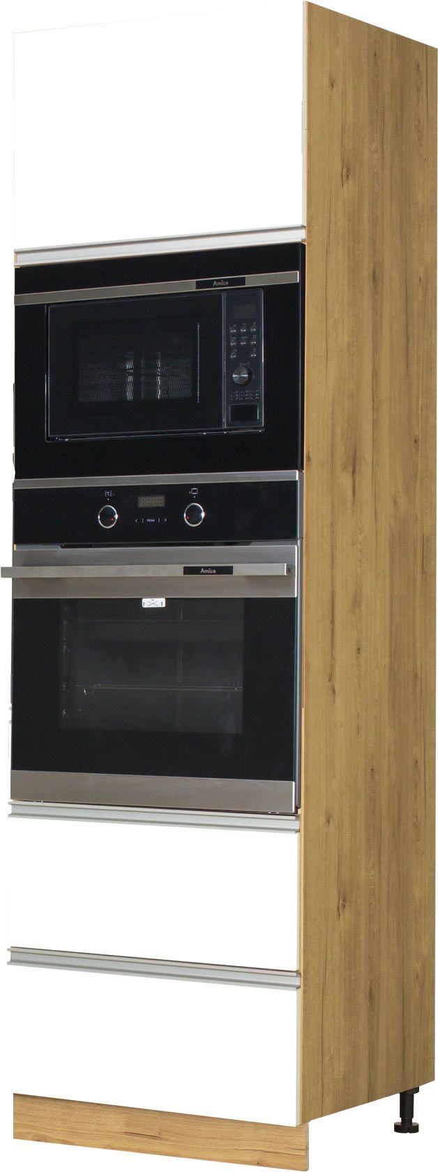 Wysoka zabudowa piekarnika/mikrofali Monia z easy box (biały połysk/dąb Soma ciemny)