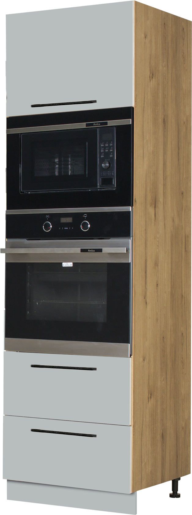 Wysoka zabudowa piekarnika/mikrofali Monia z easy box (szary/dąb Soma ciemny)