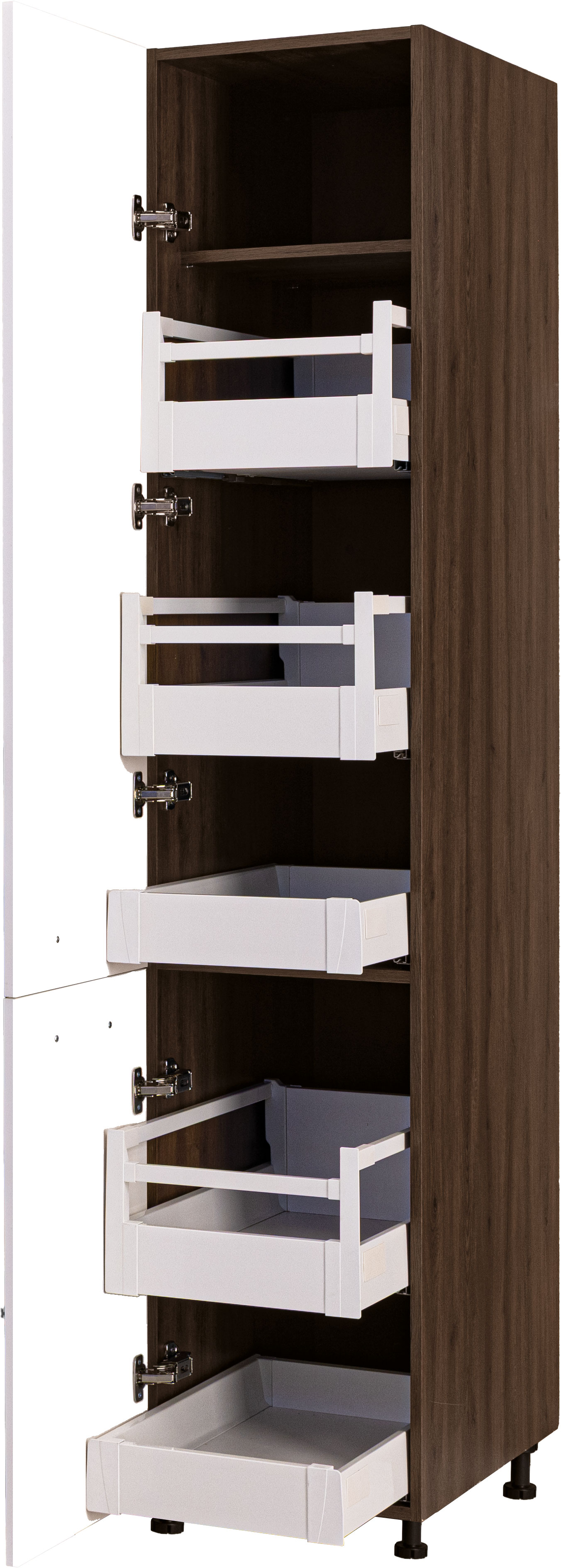 Zabudowa gospodarcza prawa Loara o szerokości 40 cm, wyposażona w szuflady wewnętrzne, to funkcjonalne rozwiązanie do przechowywania różnorodnych akcesoriów i artykułów gospodarczych. Dzięki przemyślanemu rozkładowi szuflad, zapewnia wygodny dostęp i efektywne wykorzystanie przestrzeni. Jej elegancki design doskonale komponuje się z innymi elementami wyposażenia kuchni, łącząc praktyczność z estetyką.
