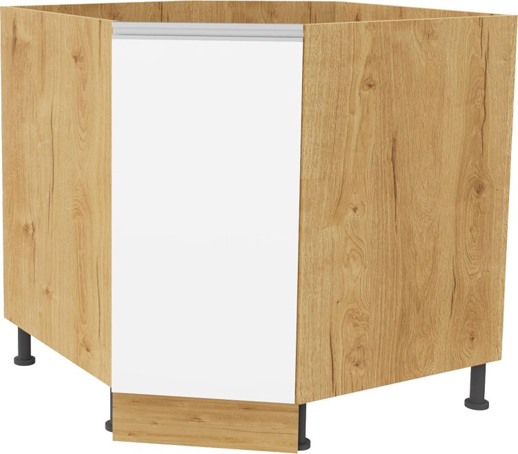 Szafka narożna dolna z półką Monia (biały połysk/dąb Soma ciemny)