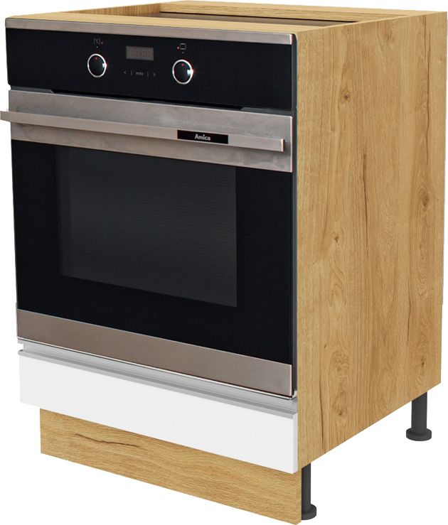 Szafka 60 dolna zabudowa piekarnika Monia (biały połysk/dąb Soma ciemny)