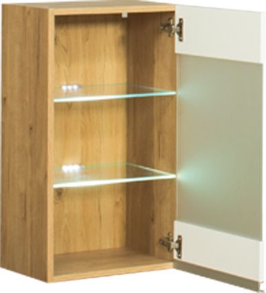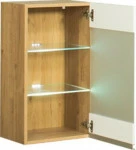 Szafka 40 górna witryna LED prawa Monia (biały połysk/dąb Soma ciemny)