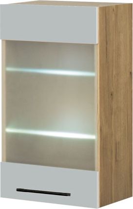 Szafka 40 górna witryna LED prawa Monia (szary/dąb Soma ciemny)