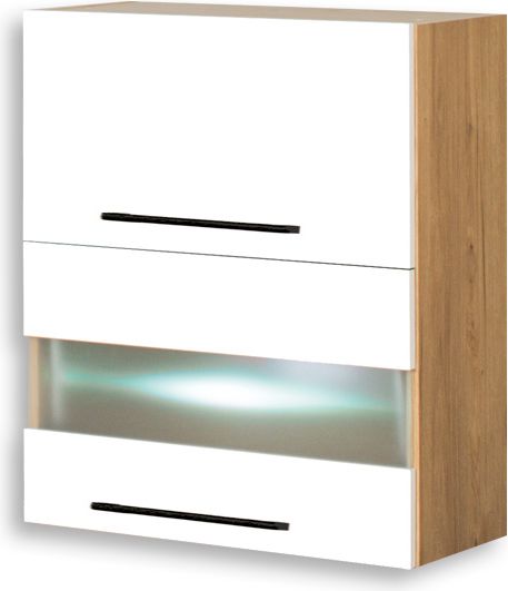 Szafka 60 górna witryna LED Bellona (biały połysk/dąb Soma ciemny)