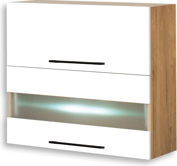 Szafka 80 górna witryna matowa LED Bellona (biały połysk/dąb Soma ciemny)