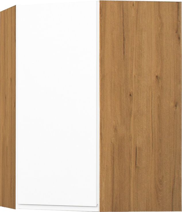 Szafka narożna górna Kampara (Biały lakier/dąb Soma ciemny)