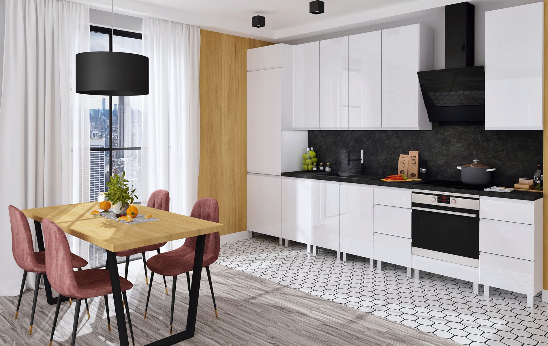 Meble kuchenne Kampara w kolorze biały lakier połysk to synonim nowoczesnego stylu i elegancji. Ich lśniąca powierzchnia dodaje kuchni świeżości i przestronności, a minimalistyczny design idealnie wpasowuje się w nowoczesne wnętrza. Wysokiej jakości materiały zapewniają trwałość, czyniąc meble Kampara funkcjonalnym i stylowym wyborem.