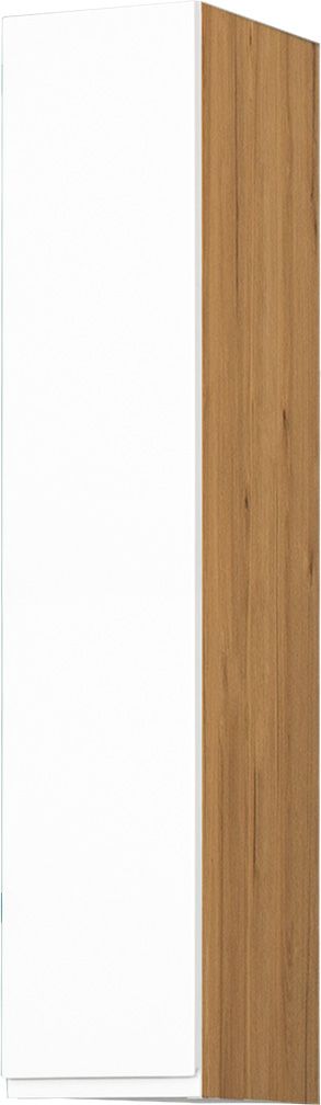 Funkcjonalna górna szafka kuchenna Kampara o szerokości 20 cm i wysokości 100 cm, z drzwiami otwieranymi w lewą stronę, wyposażona jest w zawiasy z funkcją samodomykania. Jej smukła konstrukcja umożliwia efektywne wykorzystanie przestrzeni, oferując dodatkowe miejsce do przechowywania. Nowoczesny design i ciche, automatyczne zamykanie drzwi zapewniają elegancki wygląd i komfort użytkowania w każdej kuchni.