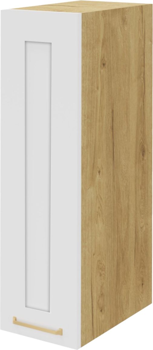 Funkcjonalna górna szafka kuchenna Laurencja o szerokości 20 cm to idealne rozwiązanie do wąskich przestrzeni w kuchni. Drzwi szafki otwierają się w lewą stronę, a zastosowane zawiasy posiadają funkcję samodomykania, zapewniając ciche i płynne zamykanie. Jej kompaktowe wymiary i nowoczesny design doskonale komponują się z resztą wyposażenia, oferując jednocześnie wygodne przechowywanie i elegancki wygląd.