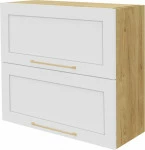 Funkcjonalna górna dzielona szafka kuchenna Laurencja o szerokości 80 cm, z parą drzwiczek uchylanych do góry. Ten praktyczny mebel pozwala na łatwy dostęp do wnętrza szafki, a jej dzielona konstrukcja umożliwia efektywne przechowywanie różnych akcesoriów kuchennych. Idealna do nowoczesnych kuchni, łącząca funkcjonalność z estetycznym designem.