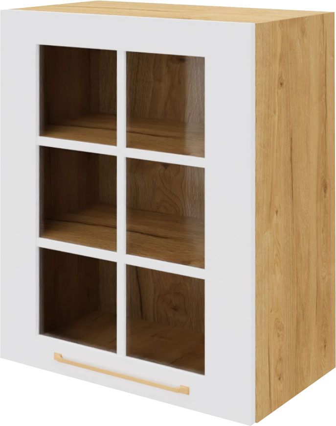 Szafka 60 górna witryna lewa Laurencja (biały lakier dąb Soma ciemny)