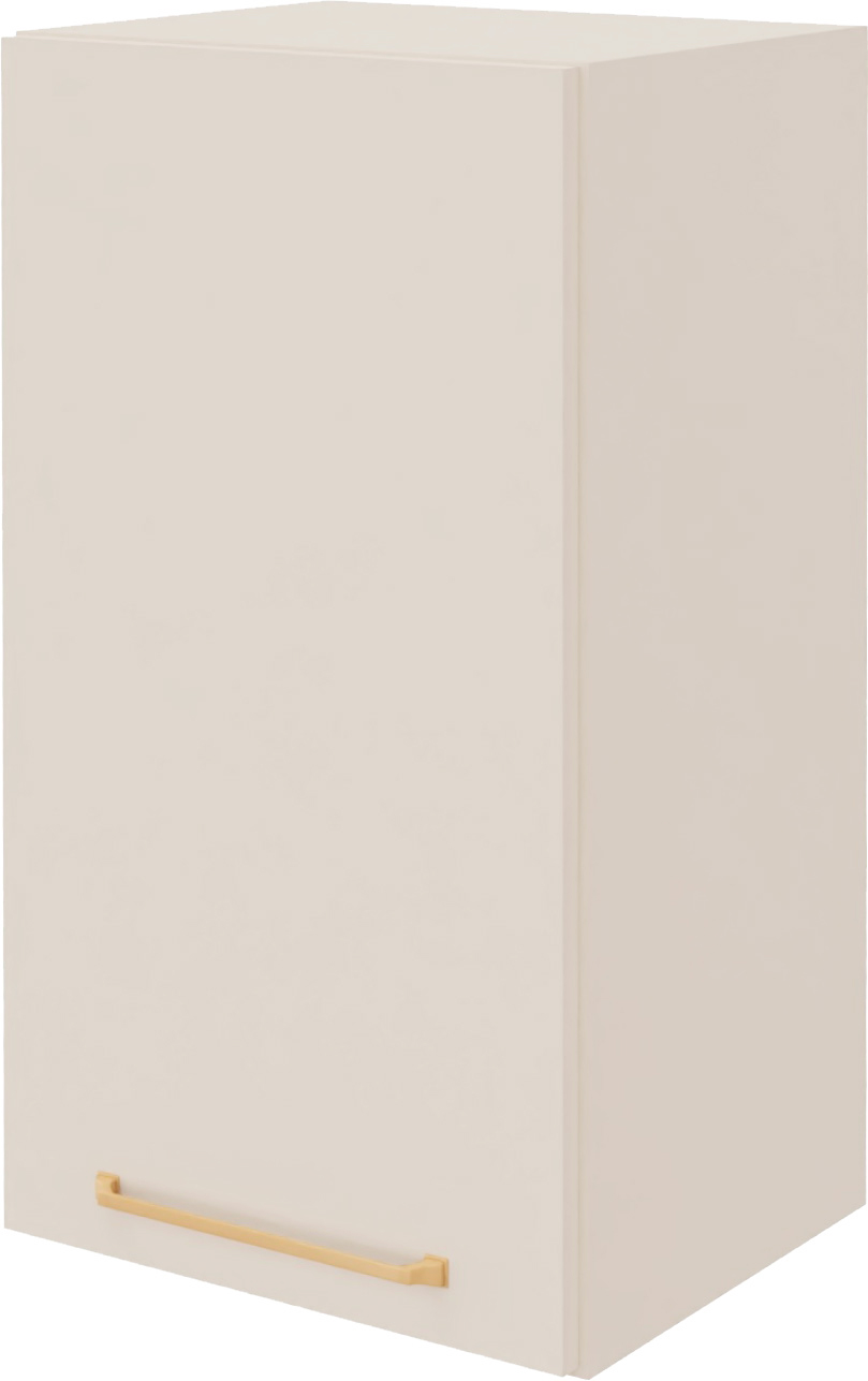 Funkcjonalna górna szafka kuchenna Imperia o szerokości 40 cm. Drzwi otwierane w prawą stronę. Zawiasy zastosowane w szafce posiadają funkcję samodomykania, co zapewnia płynne i ciche zamykanie. Idealna do przechowywania kuchennych akcesoriów, naczyń i innych drobiazgów, szafka ta łączy w sobie estetykę i praktyczność, doskonale komponując się z pozostałymi elementami kuchennej zabudowy.
