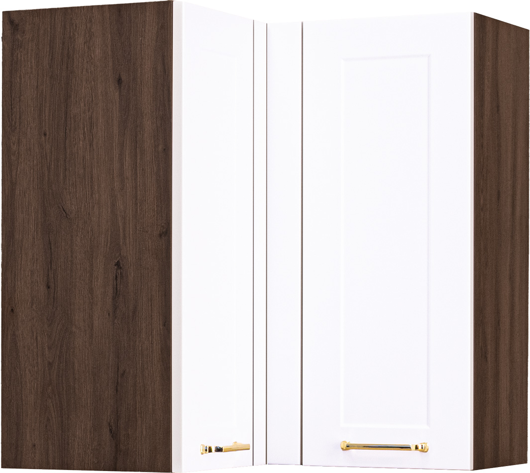 Szafka narożna górna (litera L) Laurencja (biały lakier mat/orzech Foresta)