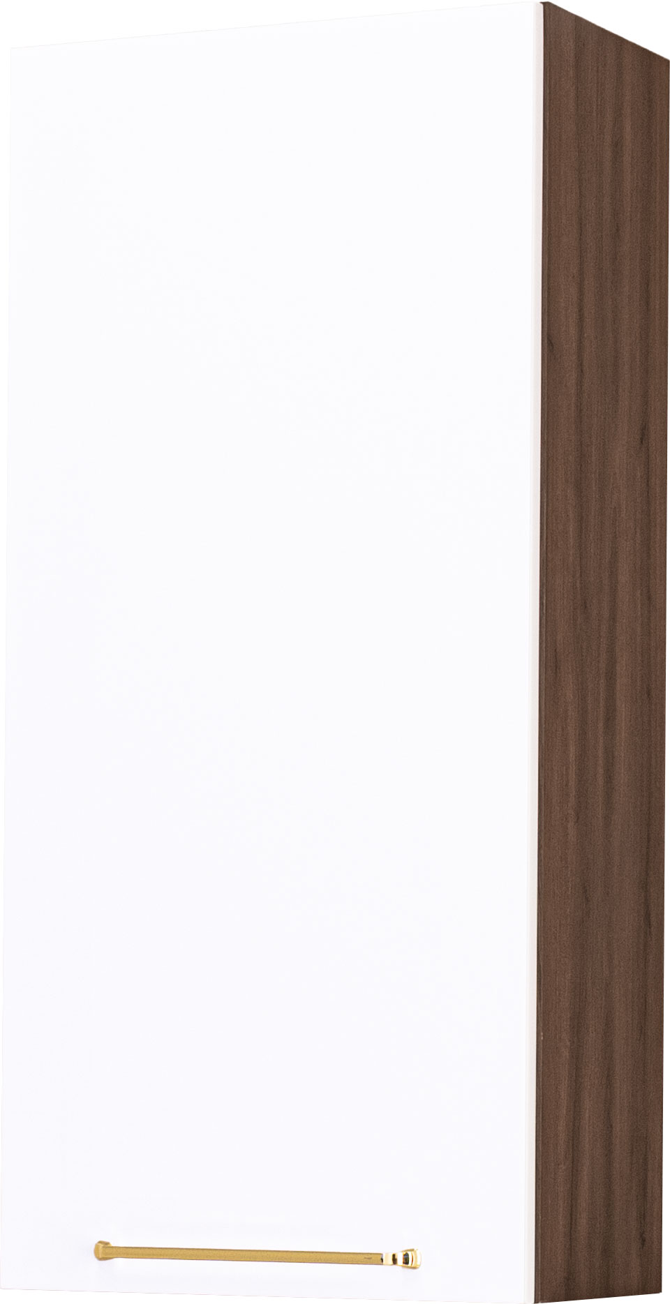 Wysoka, 100-centymetrowa górna szafka prawa o szerokości 45 cm to praktyczny i elegancki element kolekcji Loara. Front w białym połysku dodaje meblowi nowoczesnego, czystego charakteru, a korpus w odcieniu orzech Foresta wprowadza stylową harmonię do wnętrza.