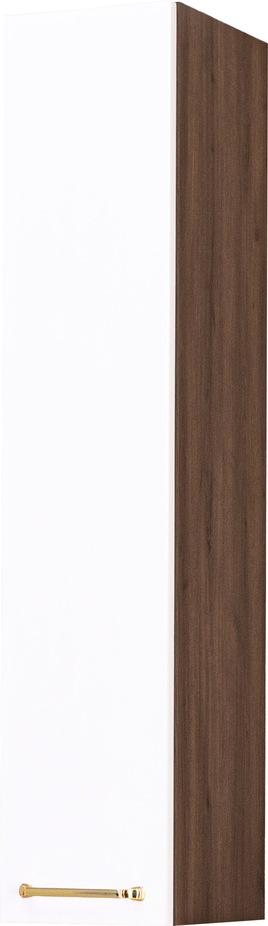 Wysoka, 100-centymetrowa górna szafka lewa o szerokości 20 cm to funkcjonalny i elegancki element kolekcji Loara. Front w białym połysku podkreśla nowoczesny charakter mebla, natomiast korpus w odcieniu orzech Foresta dodaje aranżacji harmonii i ciepła.