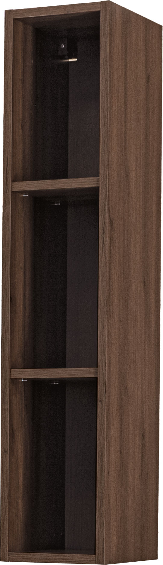 Wysoka, 100-centymetrowa górna szafka odkryta o szerokości 20 cm to praktyczny i lekki wizualnie element kolekcji Loara. Otwarta forma z widocznymi półkami idealnie nadaje się do przechowywania podręcznych akcesoriów lub eksponowania dekoracji, dodając aranżacji nowoczesnego charakteru.