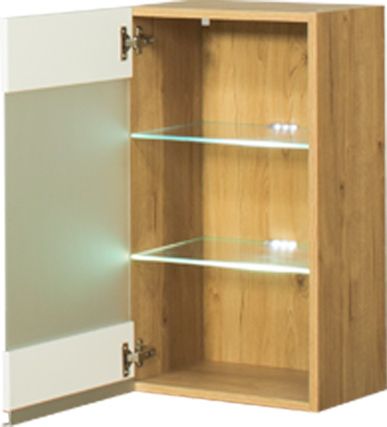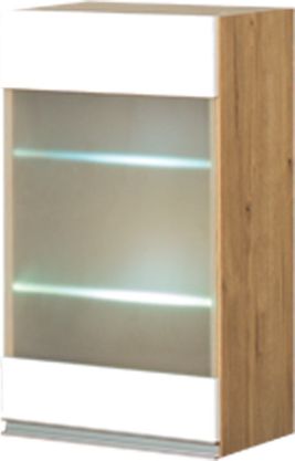 Szafka 40 górna witryna LED lewa Monia (biały połysk/dąb Soma ciemny)