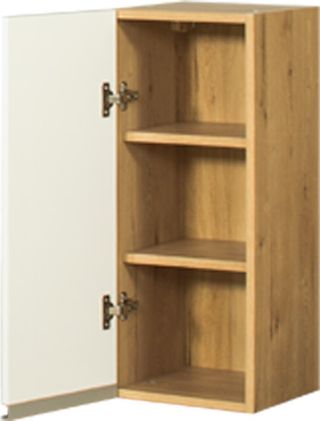 Funkcjonalna górna szafka kuchenna Monia o szerokości 30 cm z drzwiami otwieranymi w lewą stronę i zawiasami samodomykającymi łączy wygodę użytkowania z eleganckim designem. System samodomykający zapewnia cichą i płyną obsługę, a schludny wygląd szafki doskonale komponuje się z nowoczesnymi aranżacjami kuchni.