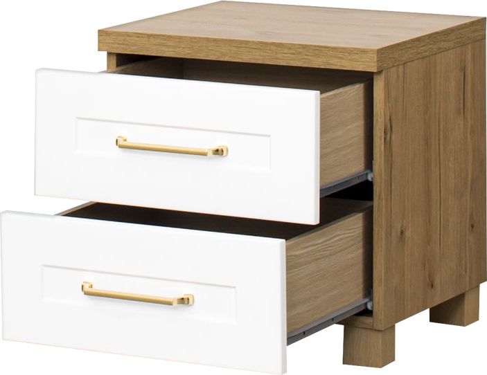 Stolik nocny Hawana (biały lakier mat/dąb Soma ciemny)