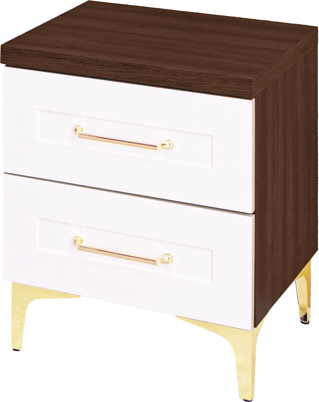 Stolik nocny „HAWANA” to elegancki i funkcjonalny mebel, idealny do sypialni urządzonej w nowoczesnym stylu. Fronty w białym lakierze pięknie kontrastują z ciepłym odcieniem korpusu w kolorze orzech Foresta. Wyposażony w dwie praktyczne szuflady, umożliwia przechowywanie drobnych przedmiotów, które warto mieć pod ręką. Kompaktowe wymiary 45 × 54 × 44 cm sprawiają, że doskonale sprawdzi się zarówno przy łóżku pojedynczym, jak i podwójnym.