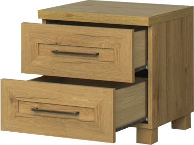 Stolik nocny z dwoma szufladami z systemu Majorka to eleganckie i praktyczne rozwiązanie do sypialni. Oferuje dodatkową przestrzeń do przechowywania najpotrzebniejszych przedmiotów w łatwo dostępnym miejscu, łącząc funkcjonalność z nowoczesnym designem. Idealny do każdej aranżacji wnętrza, dodaje zarówno estetyki, jak i wygody.