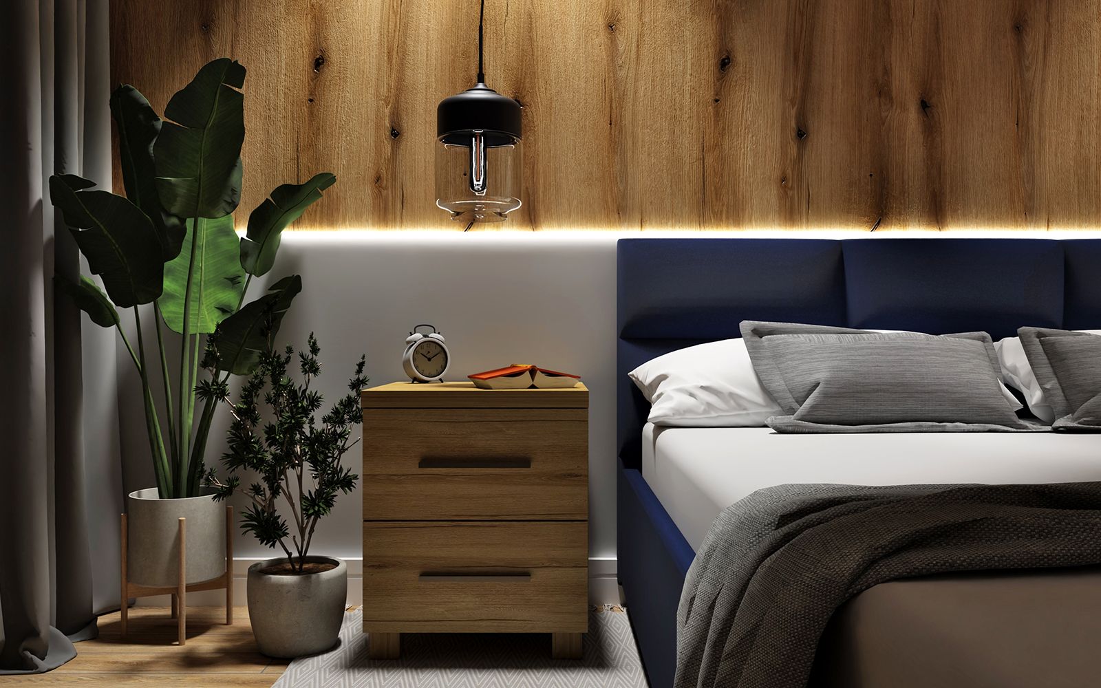 Stolik nocny z 2 szufladami z systemu Panama to elegancki i funkcjonalny dodatek do sypialni. Zapewnia wygodne przechowywanie osobistych rzeczy oraz estetyczne uzupełnienie wystroju wnętrza. Idealny wybór dla osób ceniących sobie styl i organizację w przestrzeni sypialni.