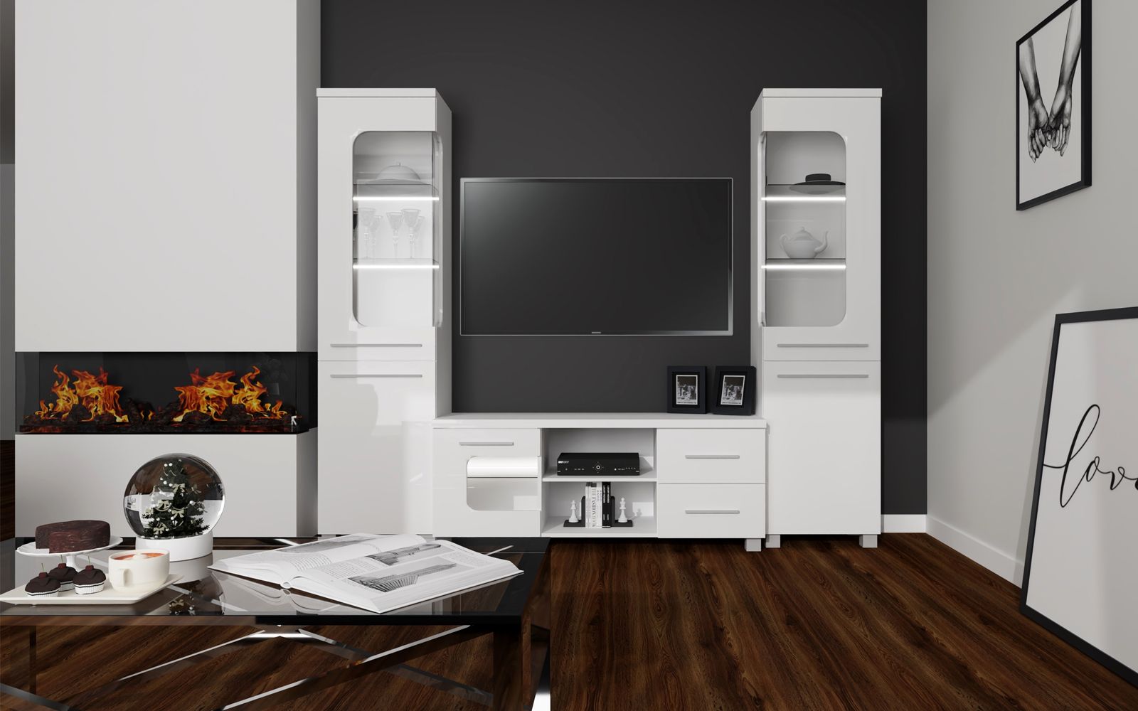 Kolekcja mebli pokojowych Panama w kolorze biały połysk to idealne rozwiązanie dla miłośników nowoczesnego i eleganckiego stylu. Charakteryzuje się minimalistycznym designem, gładkimi frontami i wysokim połyskiem, który dodaje wnętrzu świeżości i przestronności. Kolekcja Panama w białym połysku doskonale sprawdzi się w każdym nowoczesnym salonie, tworząc jasne i harmonijne wnętrze.