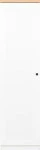 Półszafa uniwersalna z drążkiem Toskania w kolorze biały/dąb Soma ciemny to praktyczne rozwiązanie do przechowywania ubrań i akcesoriów. Klasyczne połączenie białego lakieru z dębowym wykończeniem Soma ciemny nadaje meblowi elegancki wygląd, który doskonale komponuje się z nowoczesnymi wnętrzami. Mebel posiada drążek na wieszaki, co ułatwia organizację ubrań, oraz drzwi otwierane w prawą lub lewą stronę, które można dostosować podczas montażu, zapewniając większą elastyczność aranżacyjną i funkcjonalność w użytkowaniu.