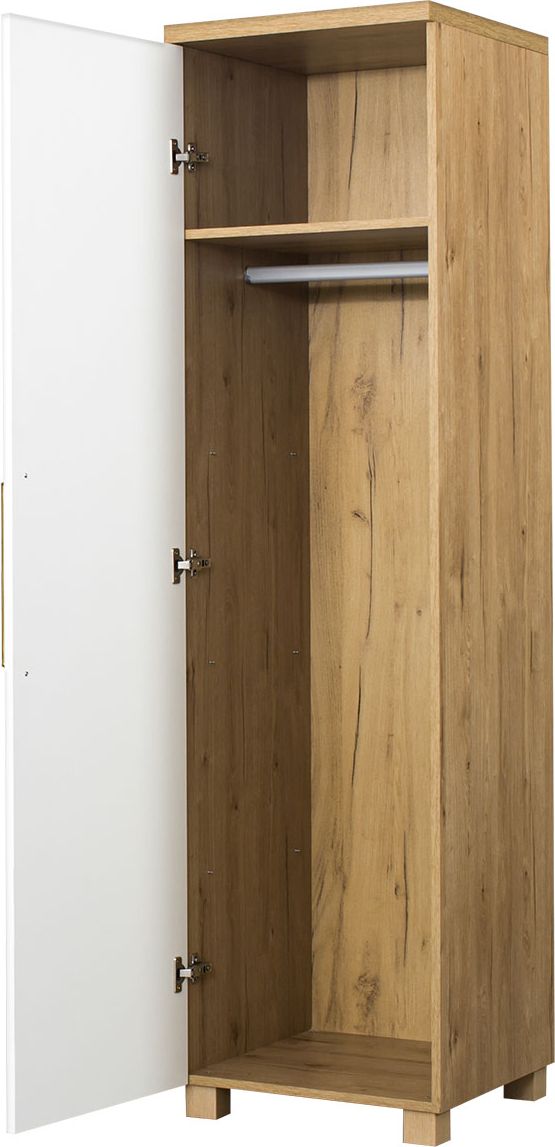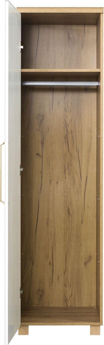 Półszafa z kolekcji Hawana to wszechstronny mebel do przechowywania, który oferuje różnorodność konfiguracji. W zestawie znajdują się półki i drążek, które można dowolnie dostosować do indywidualnych potrzeb. Dzięki temu umożliwia efektywne wykorzystanie przestrzeni w garderobie, zapewniając miejsce zarówno na odzież wieszakową, jak i na składniki potrzebne do przechowywania na półkach.