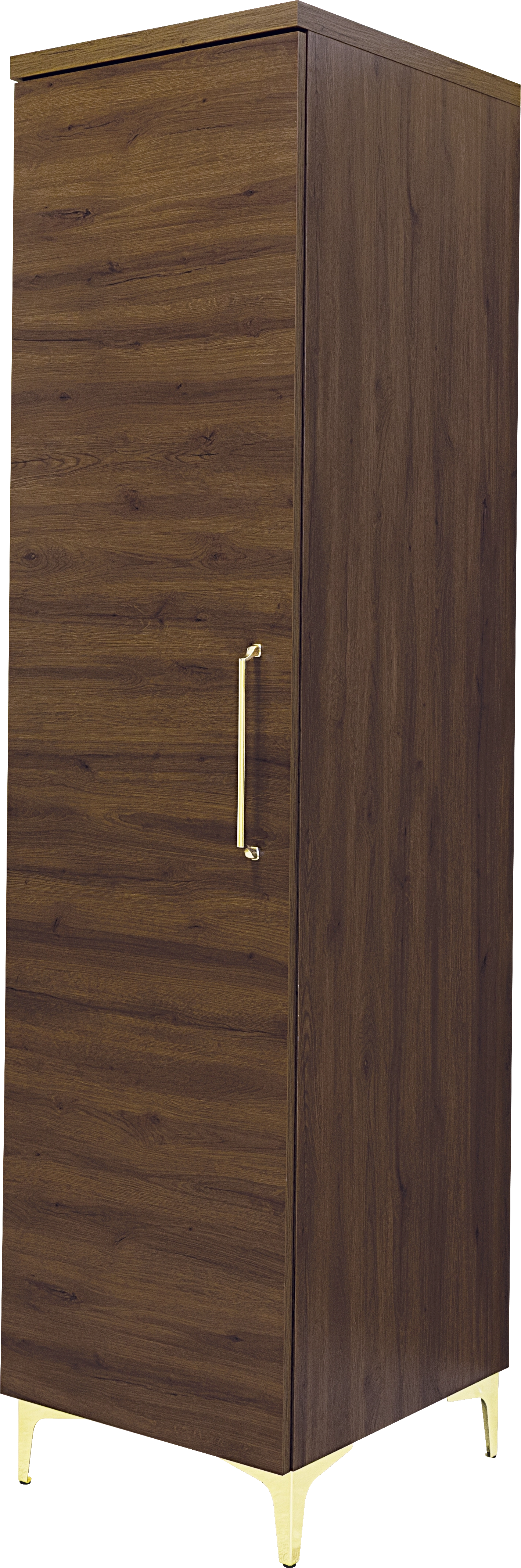 Półszafa BARI BA04 w kolorze orzech Foresta to uniwersalny i funkcjonalny mebel, który sprawdzi się zarówno jako wersja lewa, jak i prawa. Wymiary 50x190x52 cm czynią ją idealnym rozwiązaniem do mniejszych przestrzeni lub jako uzupełnienie większej zabudowy. Wewnątrz znajduje się drążek na wieszaki oraz praktyczne półki, które umożliwiają wygodne przechowywanie ubrań i dodatków. Ciepły odcień orzecha nadaje szafie elegancki, ponadczasowy wygląd, doskonale wpisujący się w klasyczne i nowoczesne wnętrza.
