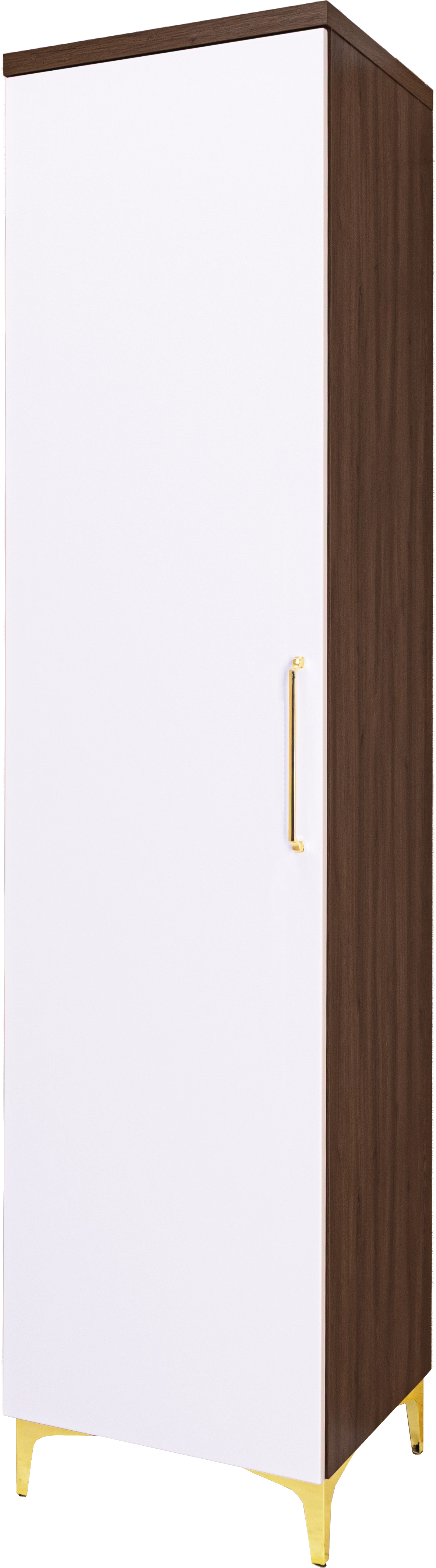 Półszafa „BARI” to funkcjonalny mebel łączący nowoczesny design z praktycznym układem wnętrza. Uniwersalna konstrukcja umożliwia montaż drzwi jako wersja prawa lub lewa – w zależności od potrzeb aranżacyjnych. Wewnątrz znajduje się drążek na wieszaki oraz półki, które ułatwiają przechowywanie ubrań i dodatków. Front w białym połysku nadaje całości elegancji, a korpus w kolorze orzech Foresta ociepla wnętrze i wprowadza naturalny akcent. Idealna do garderoby, sypialni lub przedpokoju.