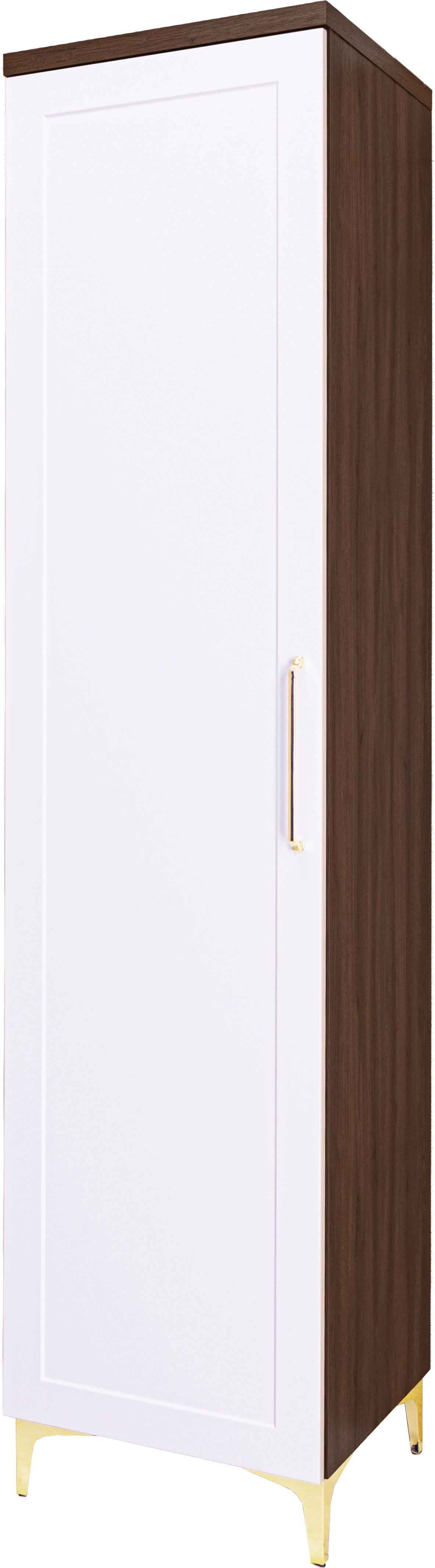 Półszafa (uniwersalna prawa/lewa) "HAWANA" to wysoki i funkcjonalny mebel, idealny do przechowywania ubrań w eleganckim stylu. Wyposażona w praktyczny drążek oraz półki, zapewnia dużo miejsca na odzież wiszącą i składaną. Dzięki możliwości montażu jako wersja prawa lub lewa, łatwo dopasować ją do układu pomieszczenia. Połączenie białych, lakierowanych frontów z korpusem w kolorze orzech Foresta nadaje meblowi nowoczesny, a zarazem przytulny charakter. Wymiary: 50 × 217 × 53 cm.