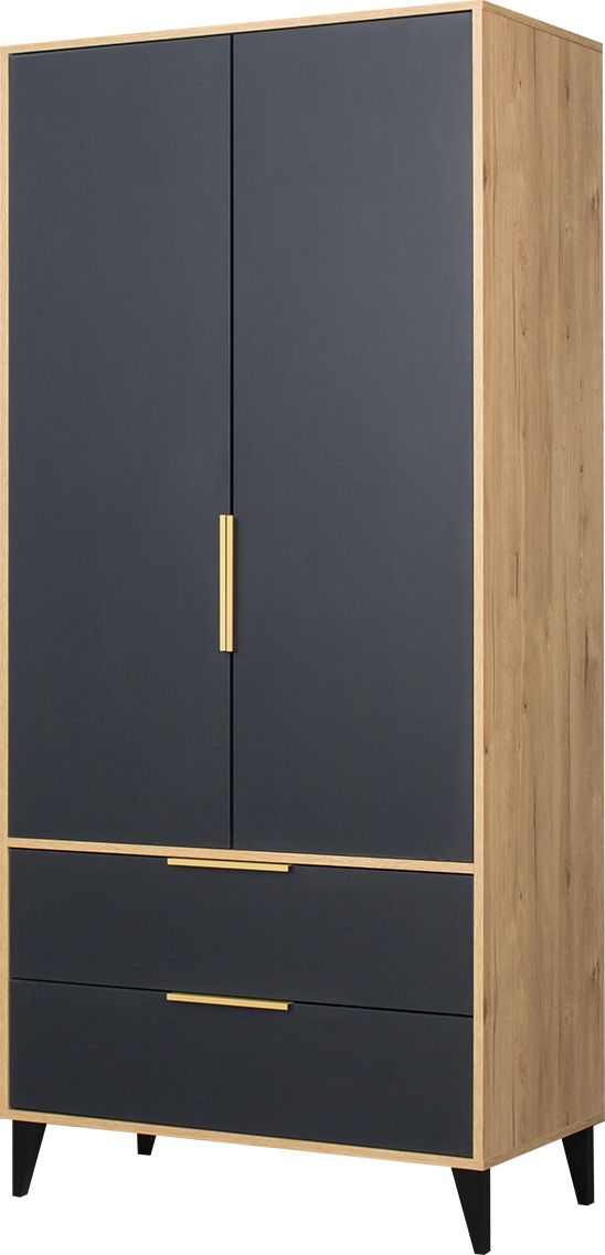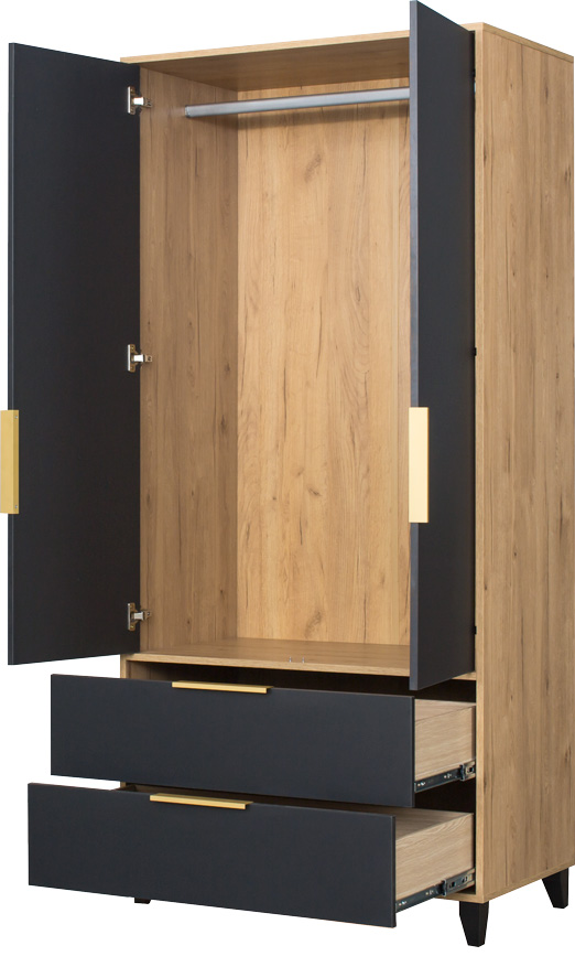 Szafa dwudrzwiowa z szufladami Floryda (grafit/dąb Soma ciemny)